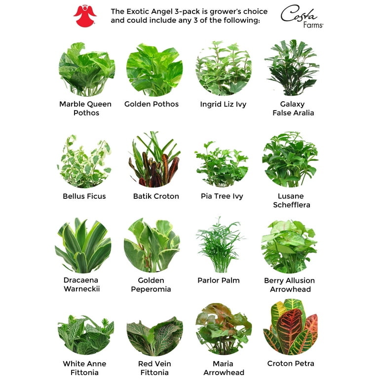 Costa Farms Exotic Angel Plants Live Indoor 8in Tall Green Assorted Foliage Bright Indirect Sunlight Plant In 4in Grower Pot 3 Pack Walmart Com
